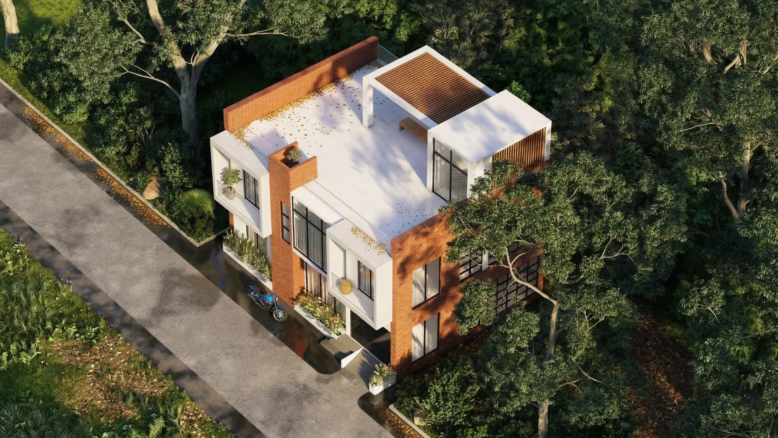 Maximizing a narrow 34×40 ft semi-urban plot to comfortably accommodate three brothers and their growing families, without the space feeling like two stacked apartments. The design had to balance financial practicality—allowing for ground-floor rental income—with the unique, quiet pressure of a hometown project, where architectural decisions directly impact the daily lives of the community.